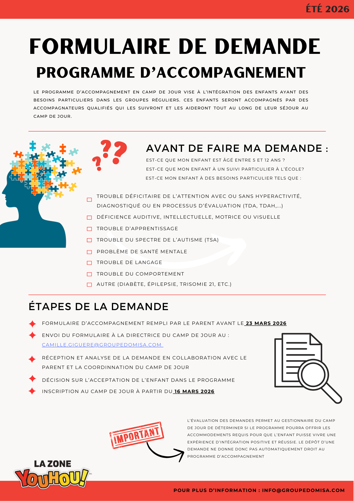 La municipalité d'Ange-Gardien offre une aide financière de 50% pour les frais de sorties du camps de jour Youhou. Les parents doivent inscrire leurs enfants séparément et fournir les reçus des activités.